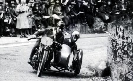 From the outset, three wheeler racing in the Isle of Man proved popular with the spectators. The crews acrobatics were particularly enjoyed, but the papers went berserk in publishing terrifying pictures of the passengers hanging out. Trade busy-bodies put paid to the event for three decades from 1925, presuming adverse publicity for the important sidecar business, whose customers were seen as staid family men.