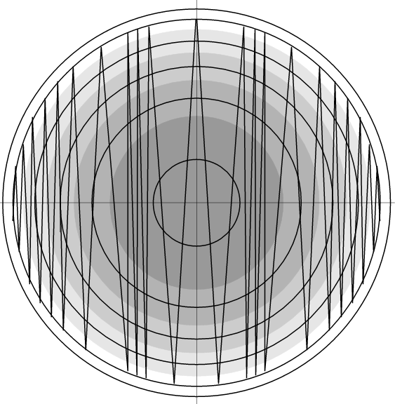Mirror on top and strokes as diagram. Initially carried out polishing strokes in an area 1" wide either side on tool/mirror centre (once round the stand). Then polished the whole mirror while concentrating strokes in the areas previously mentioned to blend in the high points with the rest of the mirror surface. |